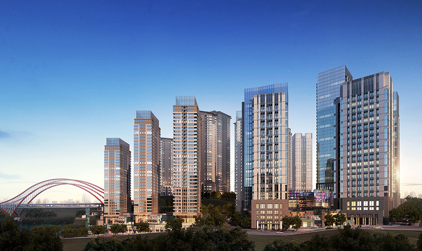 星耀天地項目位于重慶市江北區(qū)北濱二路,包括2棟高層辦公樓,3棟高層住宅及7棟多層辦公樓及商業(yè)和車庫,總建筑面積約230000㎡,為現(xiàn)澆框架剪力墻結(jié)構(gòu),最高建筑高度為99.4米。